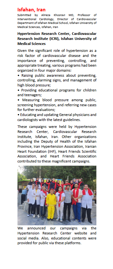 انعکاس فعالیتهای دانشگاه علوم پزشکی اصفهان در خبرنامه لیگ جهانی فشارخون